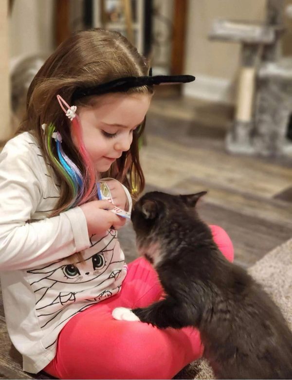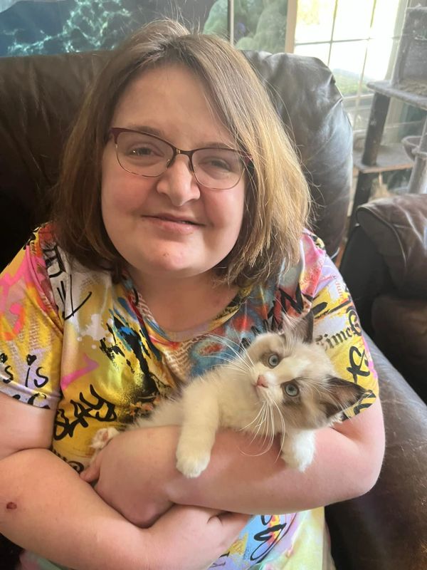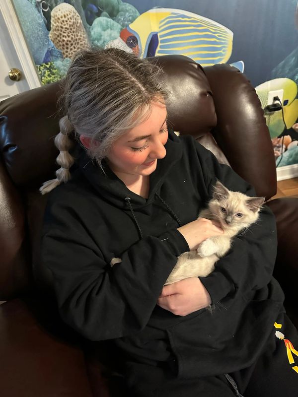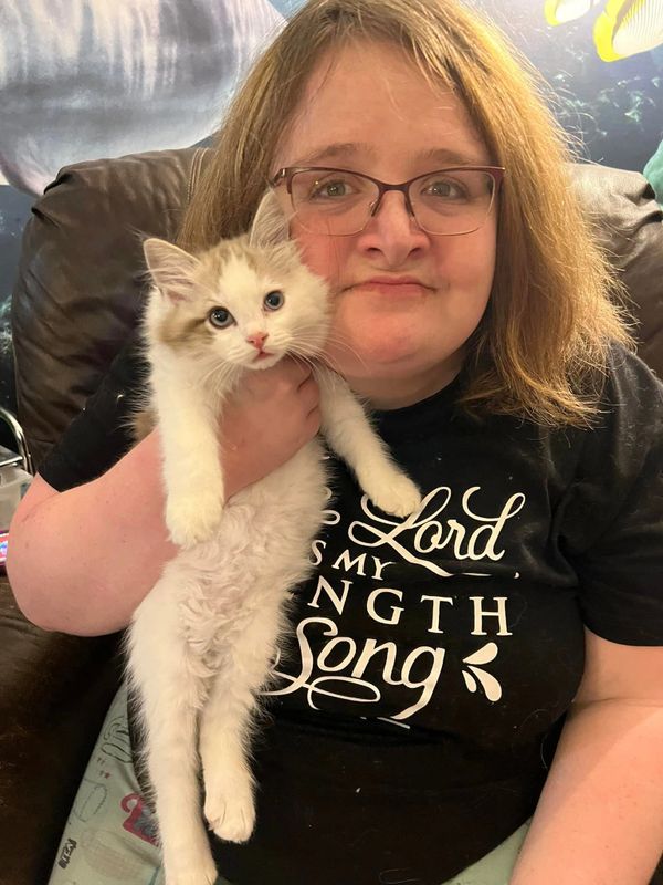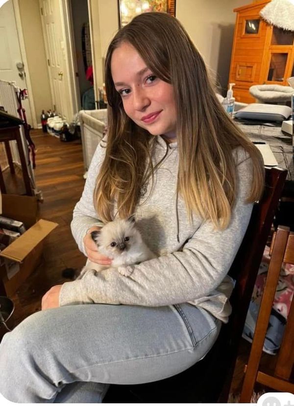 She had her first litter in June 2025. She is a cuddler with a large purr.